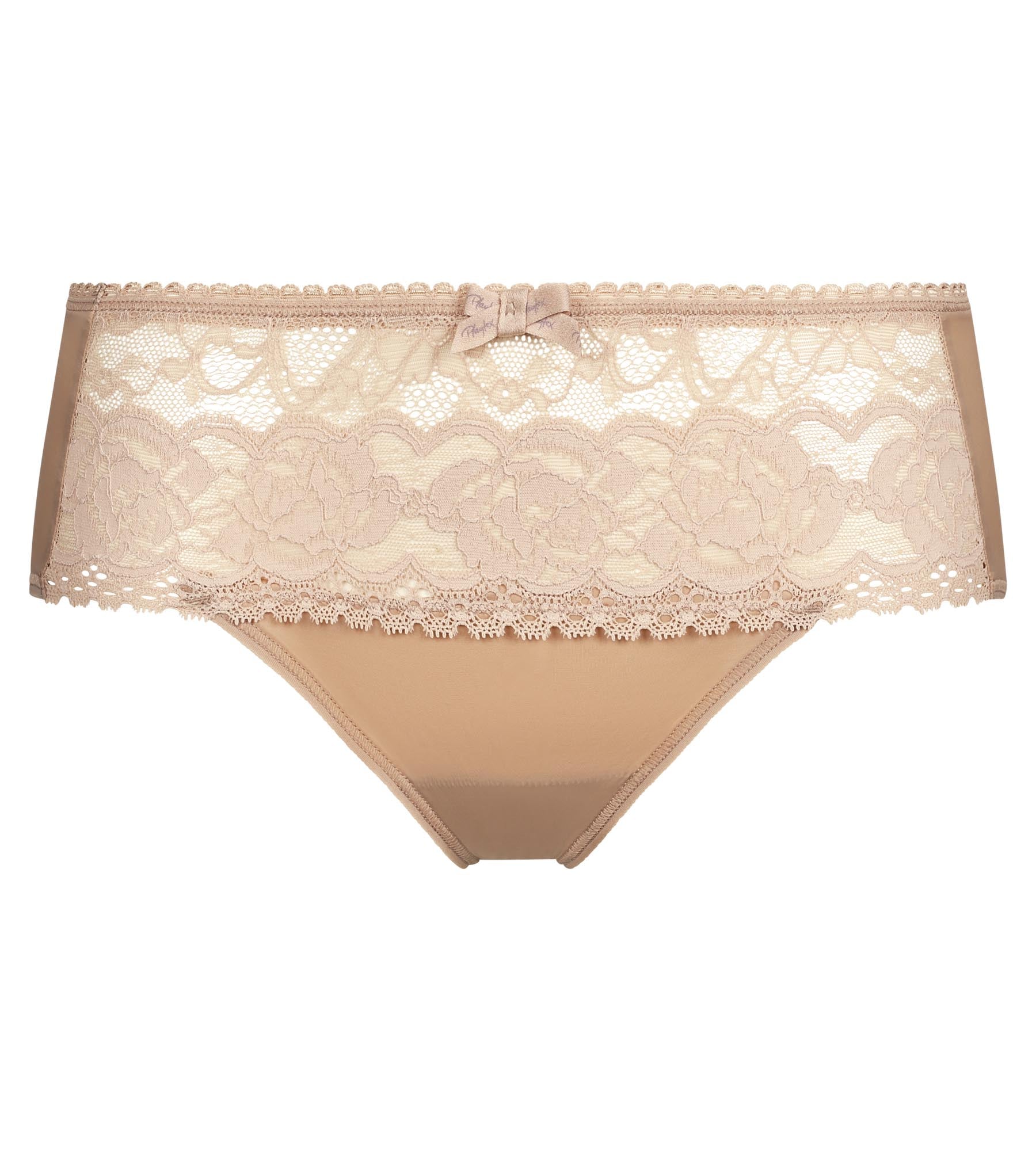 Embrace your curves with this midi briefs in beige. You will love the floral lace panelling, feminine details with the fancy elastic waist belt and the flattering midi style for a perfect all-day wear. A smooth microfibre panel at the back offers soft comfort and coverage.