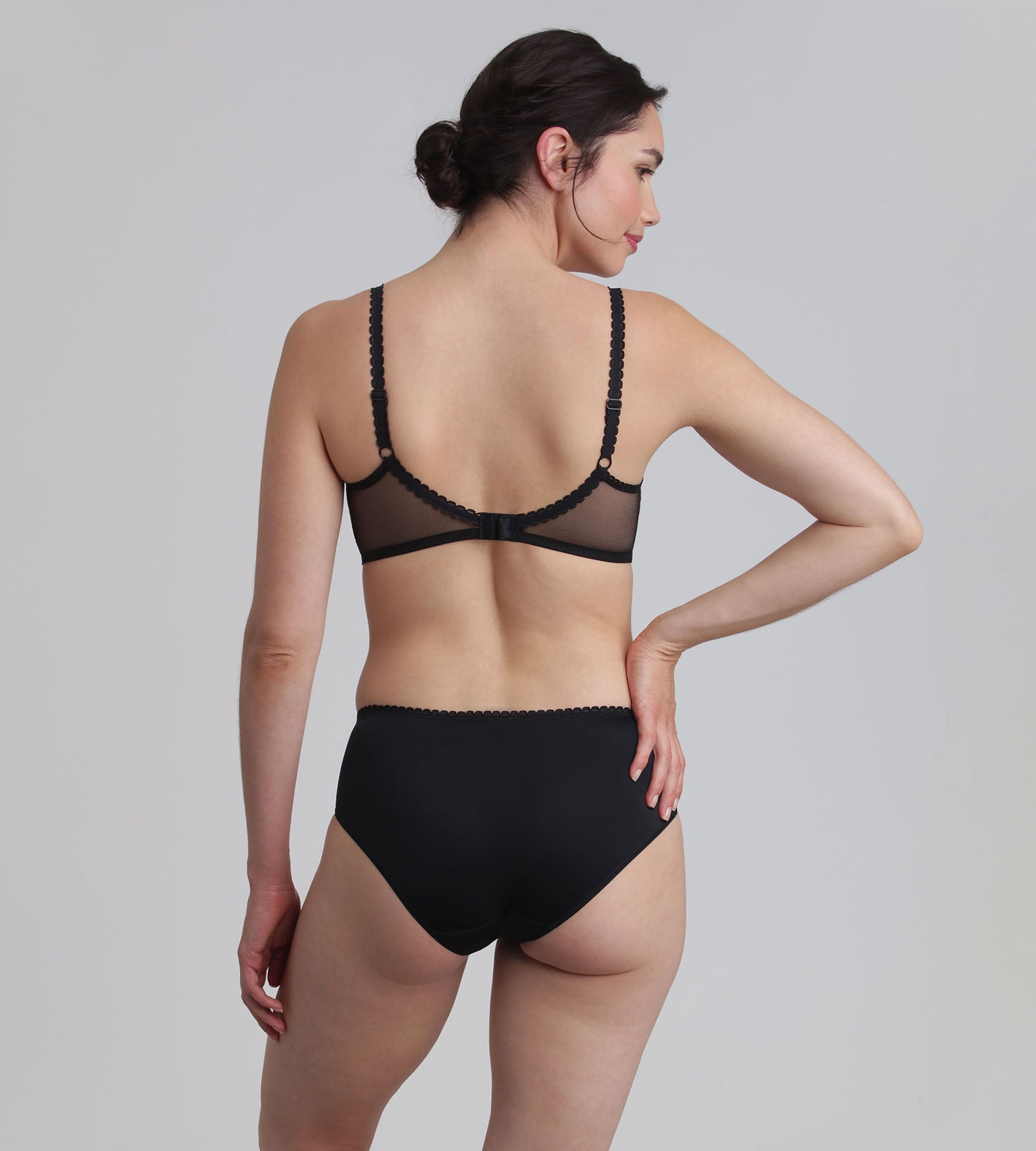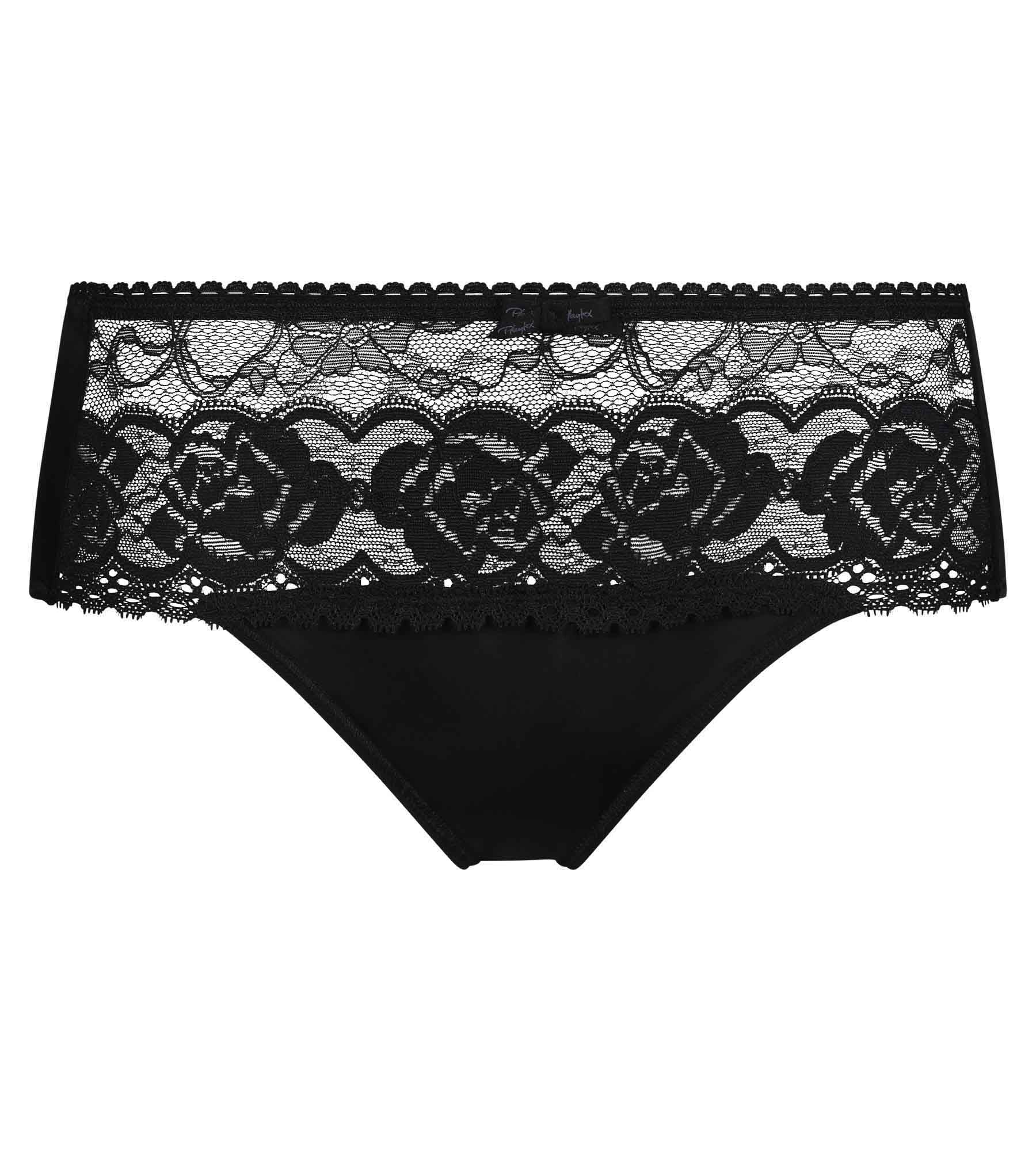 The midi knickers in black Flower Elegance Recycled offers you all the comfort and elegance you need for any occasion. Made with soft recycled microfiber and lace they bring modernity to the iconic Flower Elegance collection. You will love the feminity details and the midi shape construction of this midi briefs.