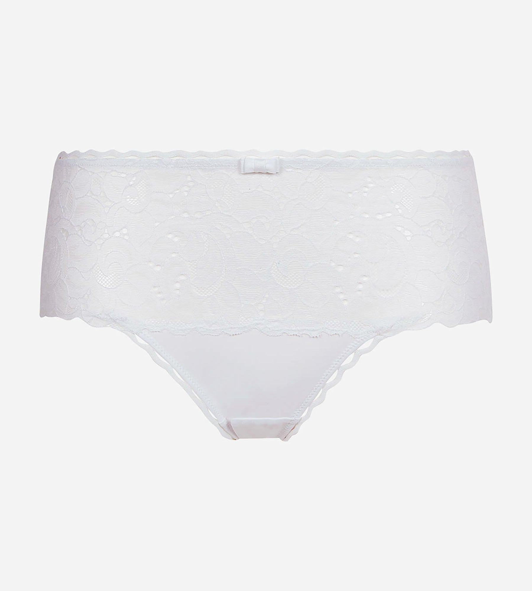 Classic white is fool-proof! Our white midi briefs from our recycled Classic Lace Support collection are the perfect addition to your underwear drawer. Fall for the elegant details such as the floral lace and satin bow.