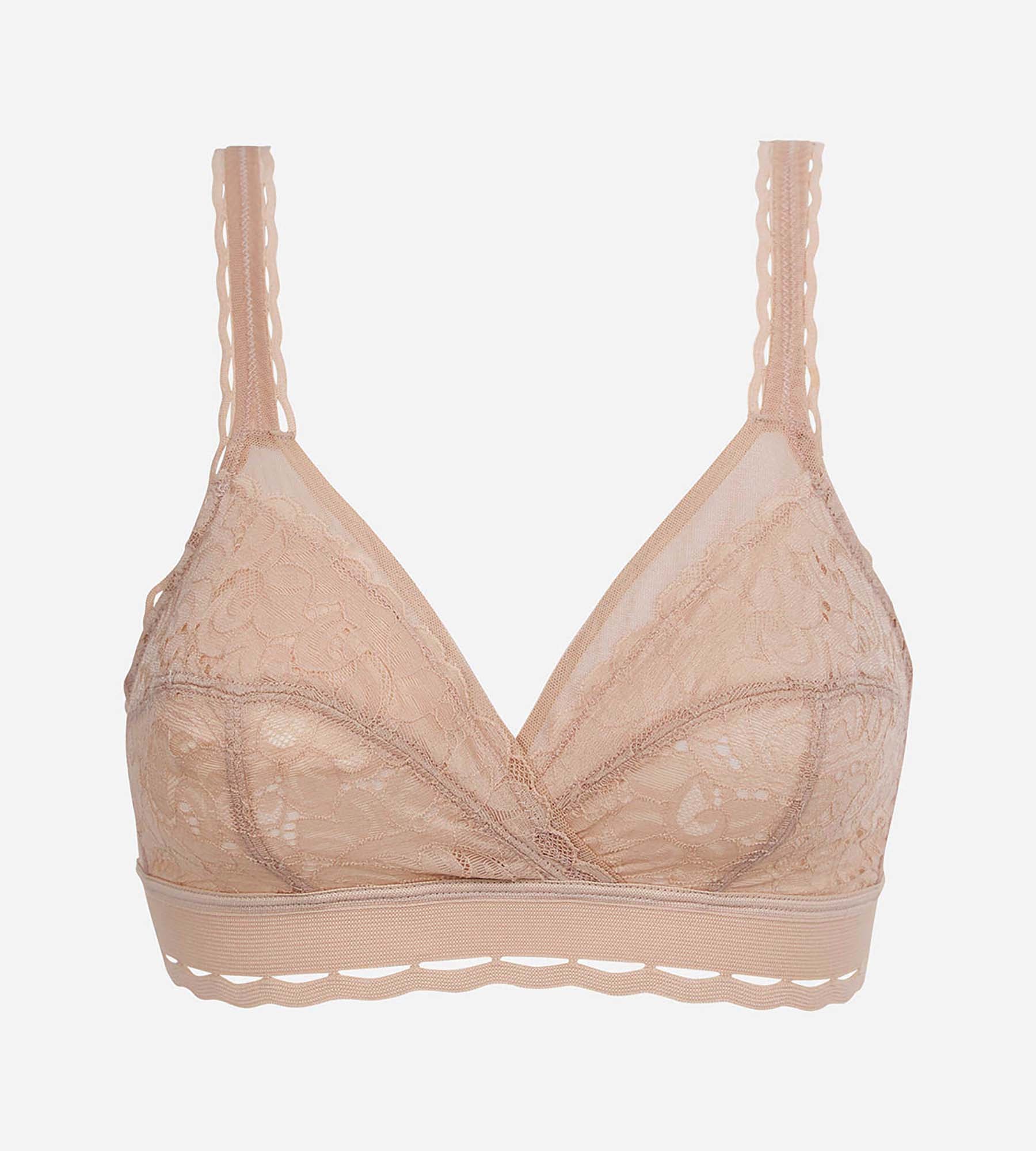Enjoy comfort with our delicate Recycled Classic Lace Support bra in beautiful floral lace. In beige, this bra is discreet under light-coloured clothing and is ultra elegant! Its criss-cross front flatters your chest and is irresistibly feminine.