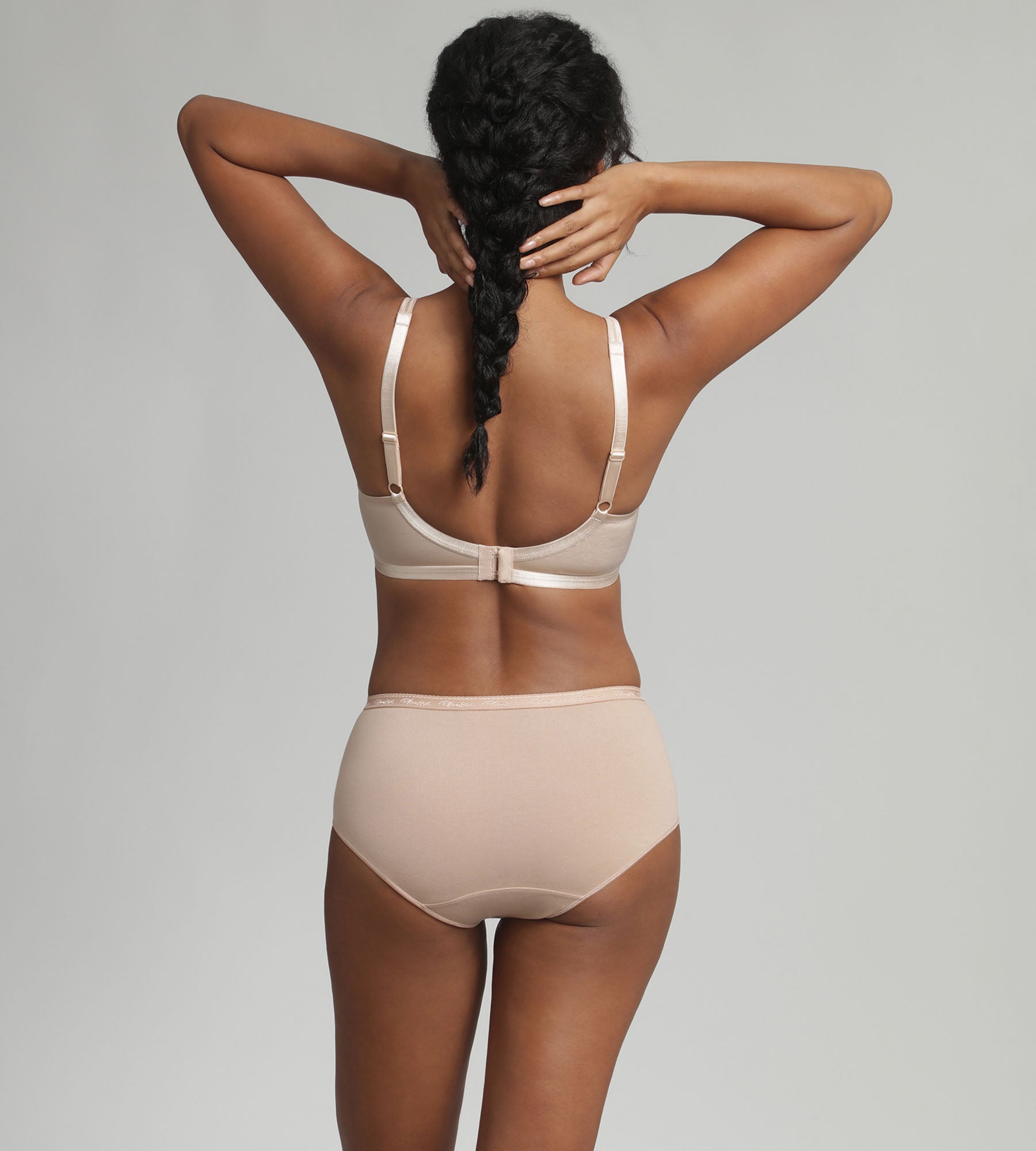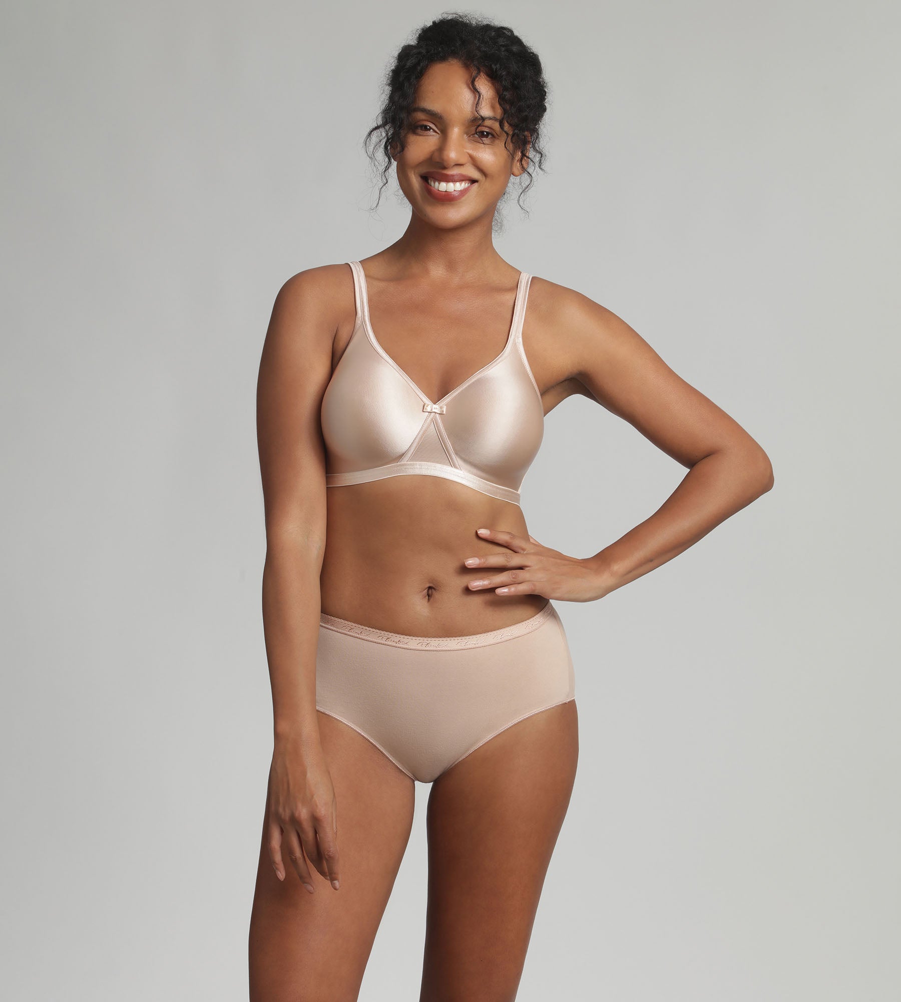 Soft and silky, this nude non-wired bra from the Satiny Micro Support line guarantees invisibility. It’s the perfect ally to slip under fitted clothing, dresses and other form-fitting pieces. This feminine bra would go perfectly with our Stretch Cotton knickers in a matching nude shade.