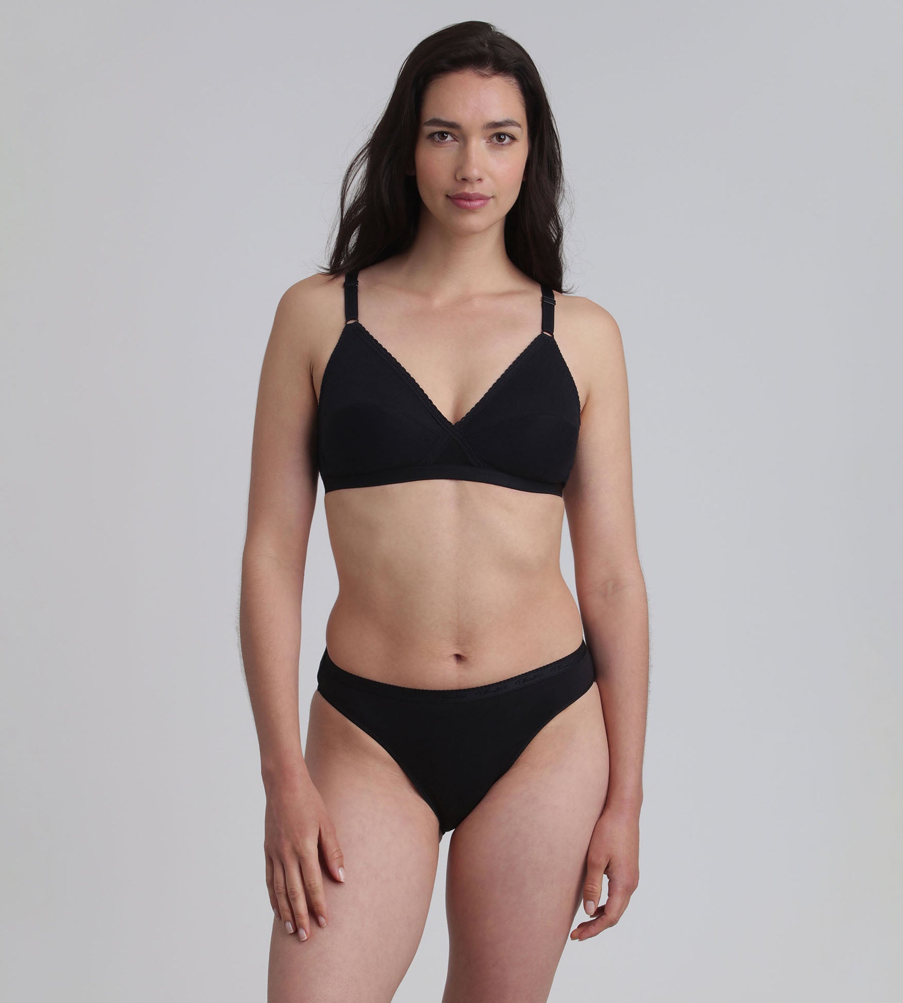 You can't go wrong with a classic black bra! You can match up this non-wired bra Essential Support Cotton with one of our cotton knickers from Organic Cotton collection. Wear this for lounging around at home or when you're on the go.