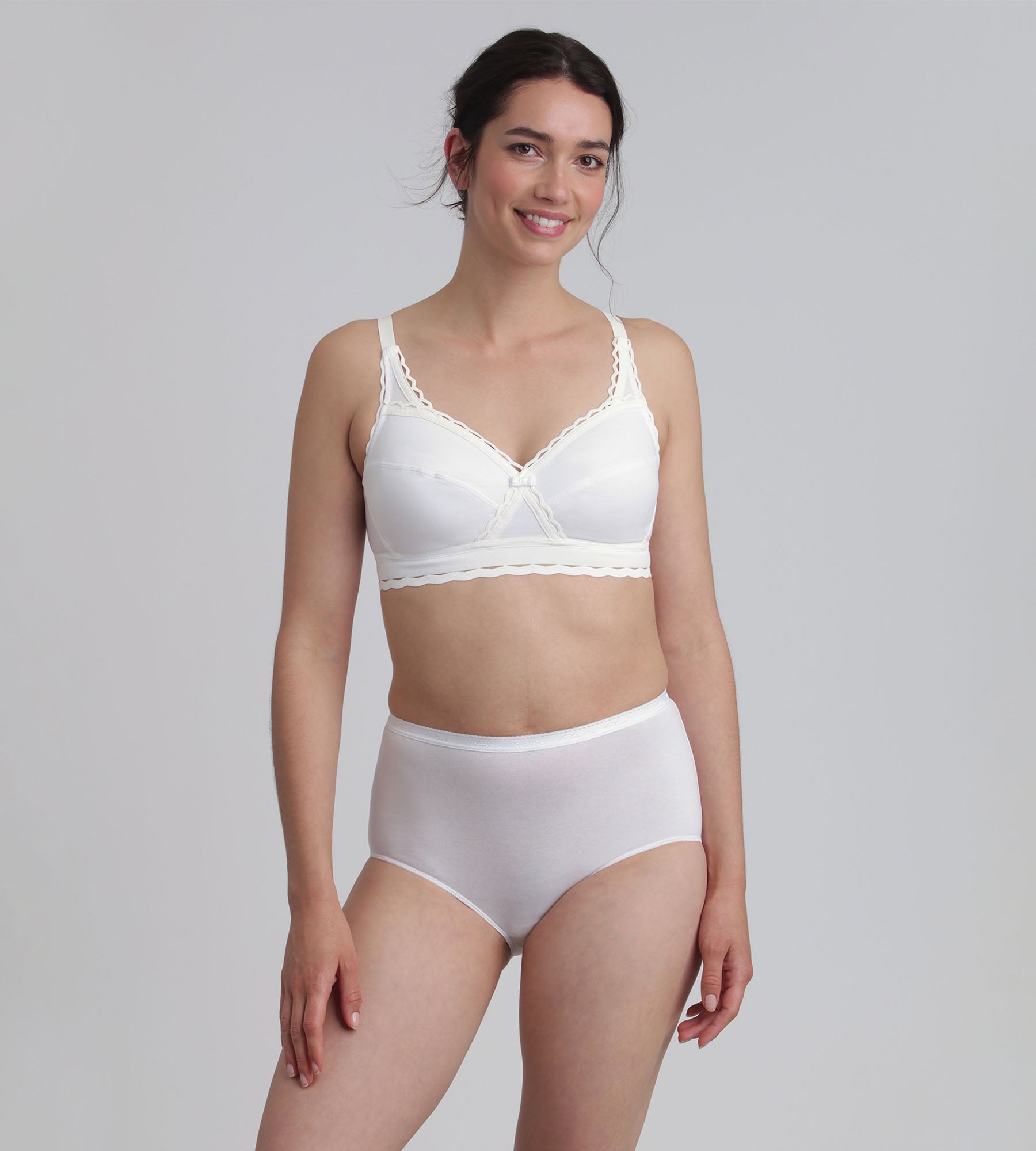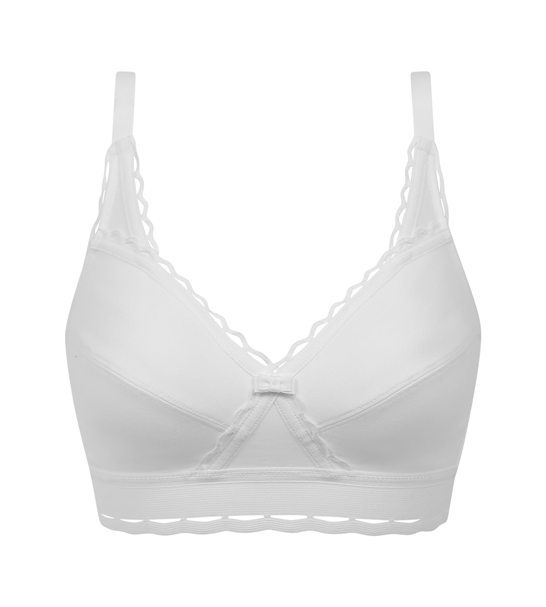 Fall for our non wired bra, crafted in 100% organic cotton. The style boasts scalloped detailing around the cups and the hem for an ultra-feminine finish. The straps are wide to provide support and comfort!