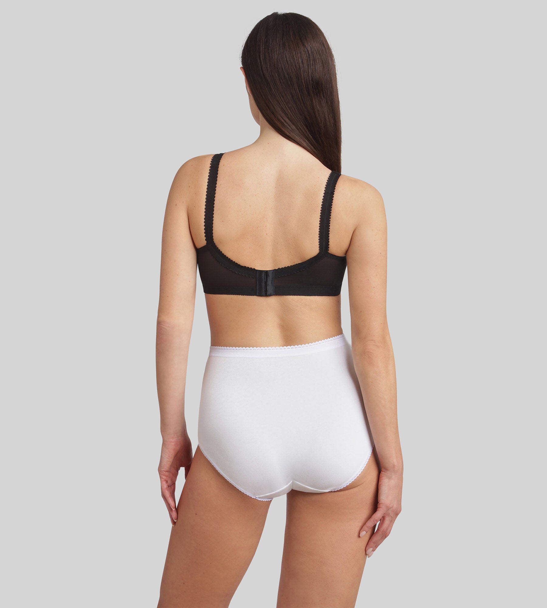 Treat yourself to absolute comfort with this set of 3 high-waisted Playtex® knickers in lavender from the Cotton Stretch collection. Their stretch cotton fabric hugs your curves perfectly and offers optimal freedom of movement, while the delicate croquet trim at the waist adds a feminine touch. The maxi cut subtly rises to the small of the back and hugs the tummy for a graceful silhouette. The elastic cotton fabric adapts perfectly to the body's shape with flexibility without leaving marks on the skin. For a perfectly coordinated set, wear these knickers with a cotton bra.