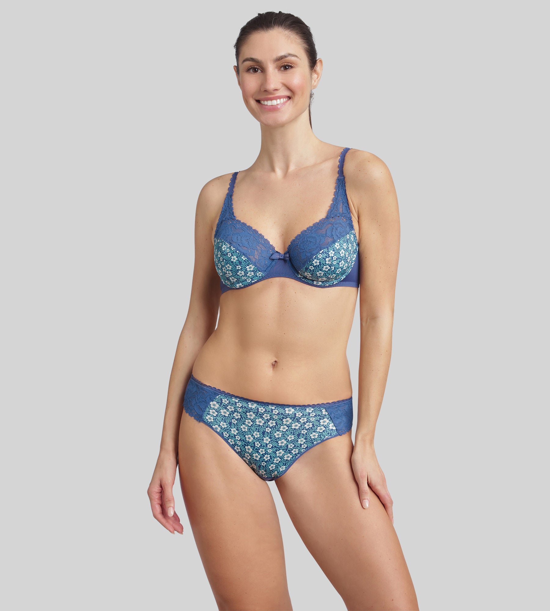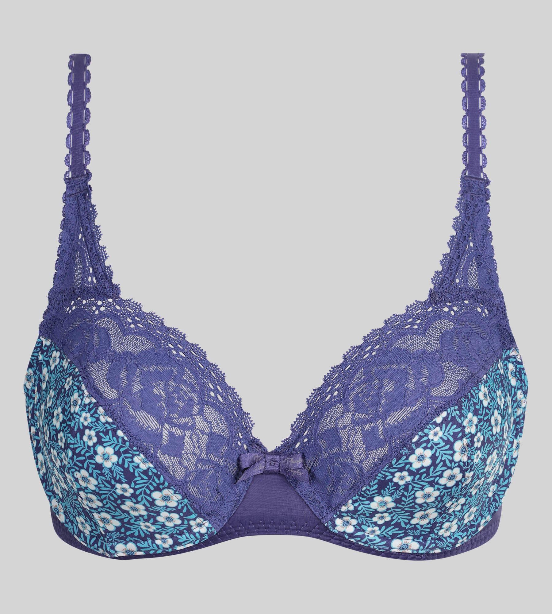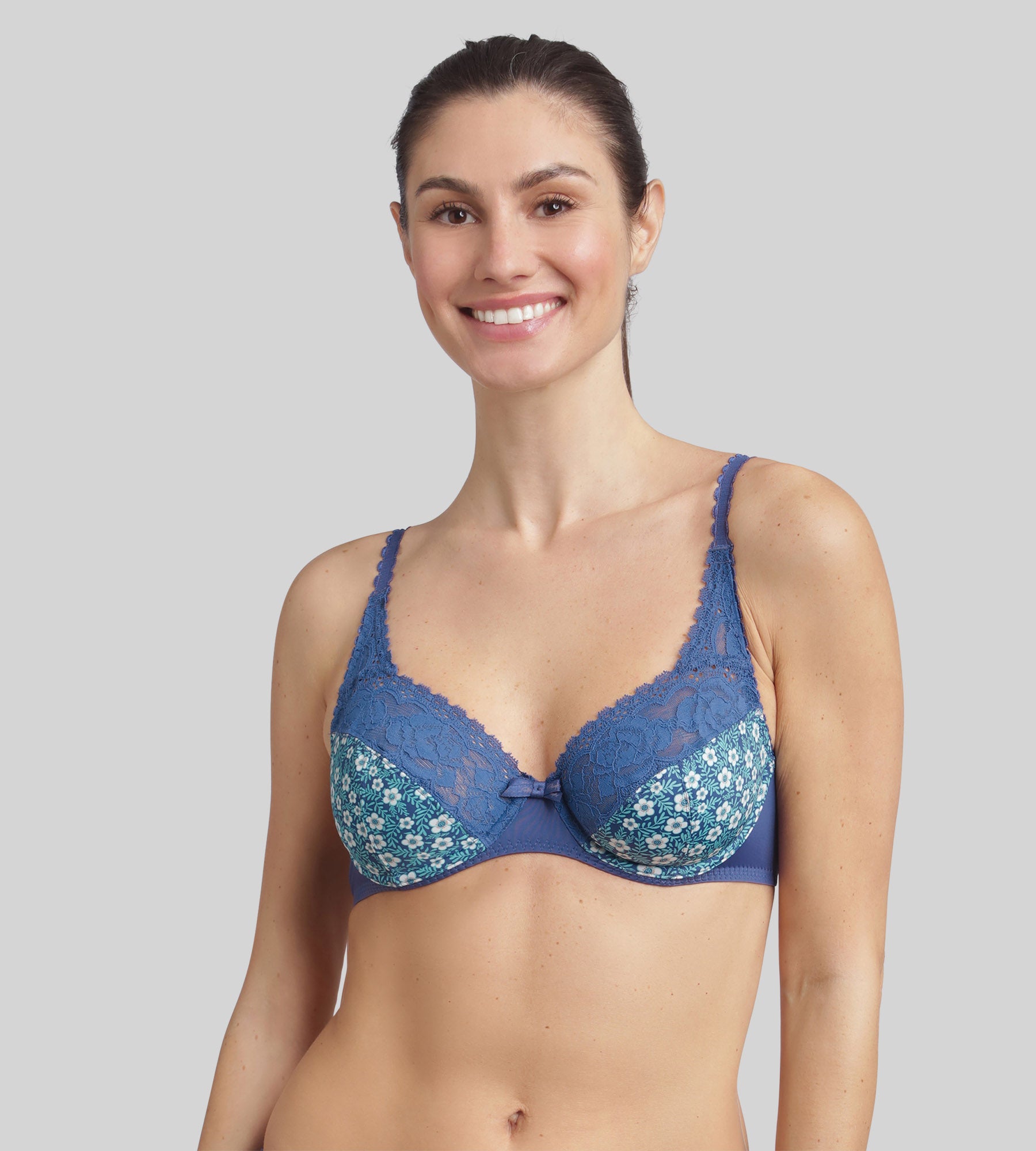 Underwired bra in azure blue Flower Elegance Micro Recycled
